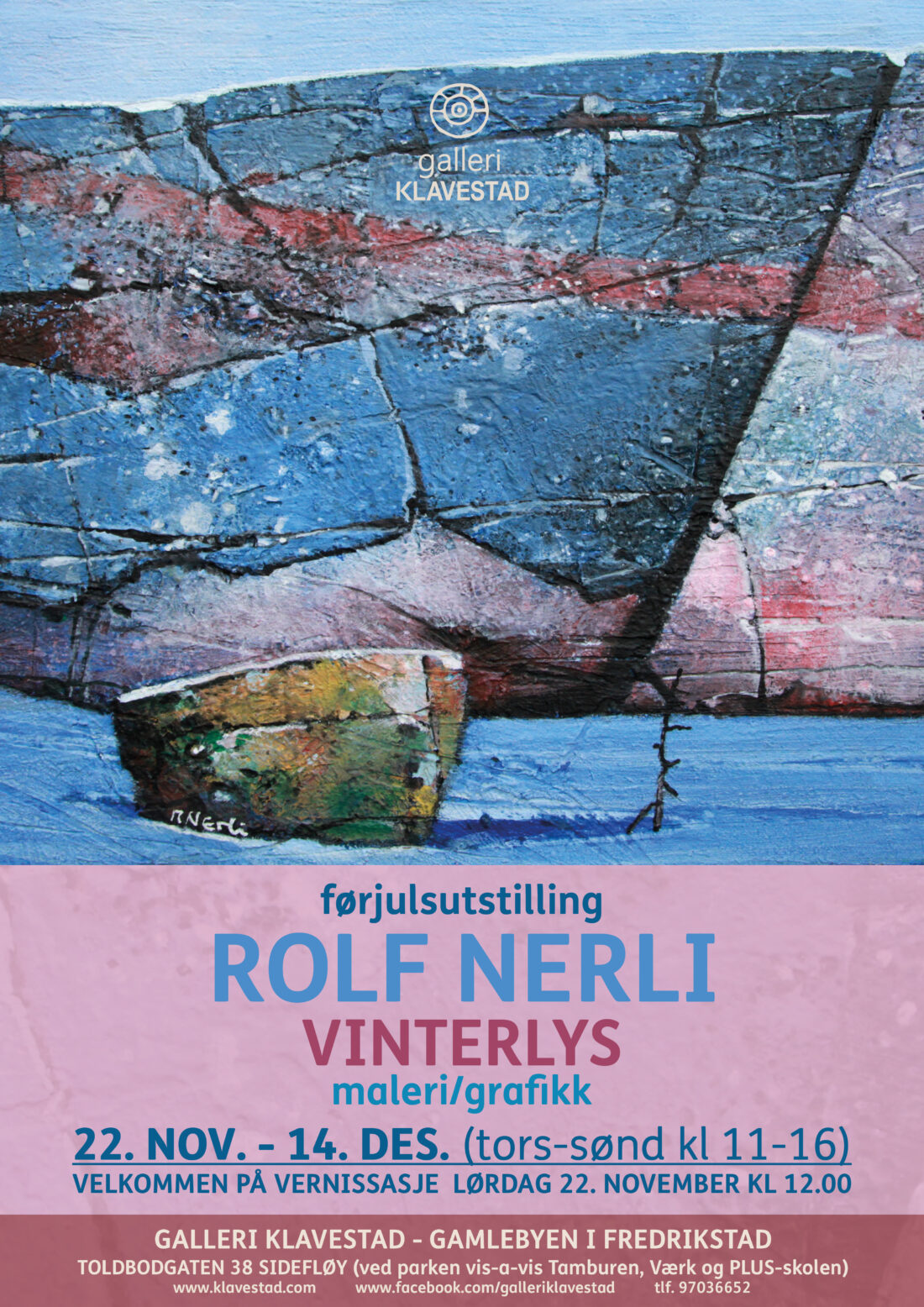 Galleri KLAVESTAD i Gamlebyen i Fredrikstad har gleden av å ønske velkommen til førjulsutstillingen "Vinterlys" med malerier og grafikk av Rolf Nerli. Kunstneren er bosatt i Tønsberg og har gjennom fem tiår vært blant våre fremste grafikere. Få kan skildre vinterlyset slik som ham. I...